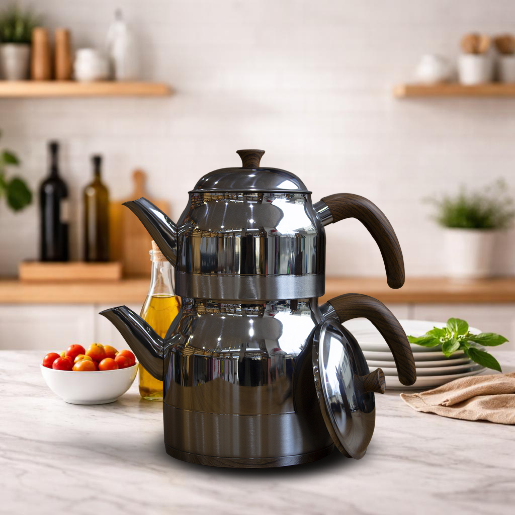 Geniş hacmi sayesinde kalabalık aileler ve misafir sofraları için idealdir. Isıyı eşit şekilde dağıtan tabanı, çayın ideal kıvamda demlenmesine yardımcı olur. Parlak çelik yüzeyi kolay temizlenebilir yapısıyla hijyenik kullanım sunarken, sade ve klasik tasarımı her mutfağa uyum sağlar.